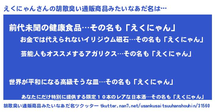 | 意味不明あだ名 | 『自称えくにゃん』『永久保存えくにゃん』 |