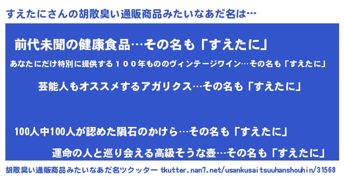 | 意味不明あだ名 | 『自称すえたに』『永久保存すえたに』 |