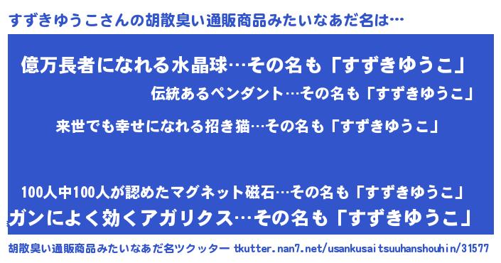 | ヘコむあだ名 | 『すずきゆうこ(笑)』『すずにゅー』 |