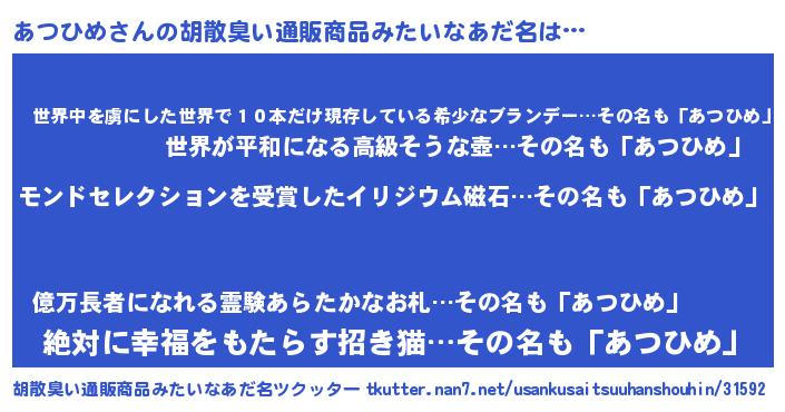 | ヘコむあだ名 | 『あつひめ(笑)』『酢こんぶ』 |