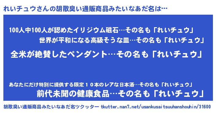 | 意味不明あだ名 | 『とにかく怪しいれいチュウ』 |