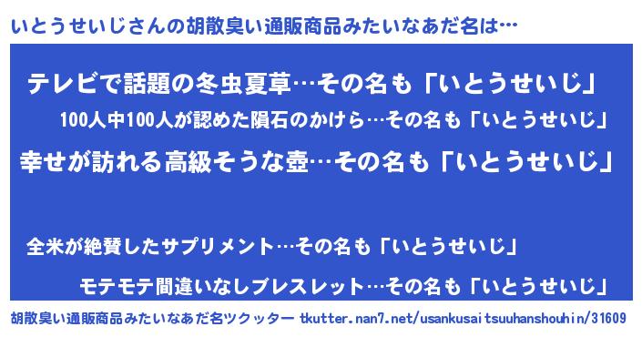 | 男性向けラノベタイトル風あだ名 | 『やはりいとうせいじの青春ラブコメはまちがっている 』 |