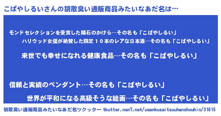 | 意味不明あだ名 | 『永久保存こばやしるい』 |