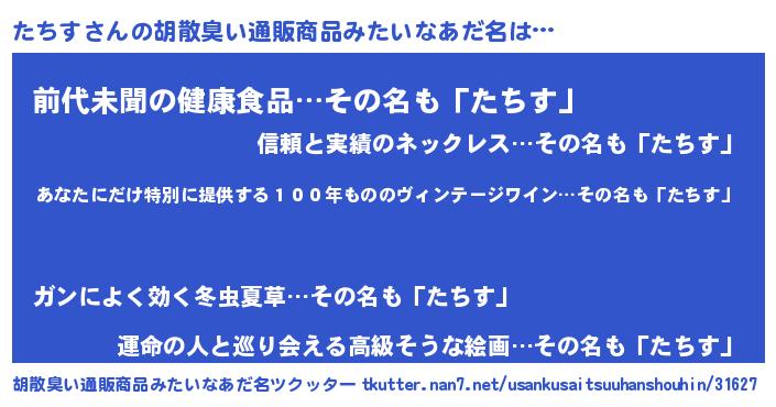 | ヒーロー風カッコイイあだ名 | 『仮面タチダー』『ネオタチス』 |