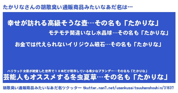 | 女子向けラノベタイトル風あだ名 | 『たかりな恋絵巻』『たかりなの婚約者』 |