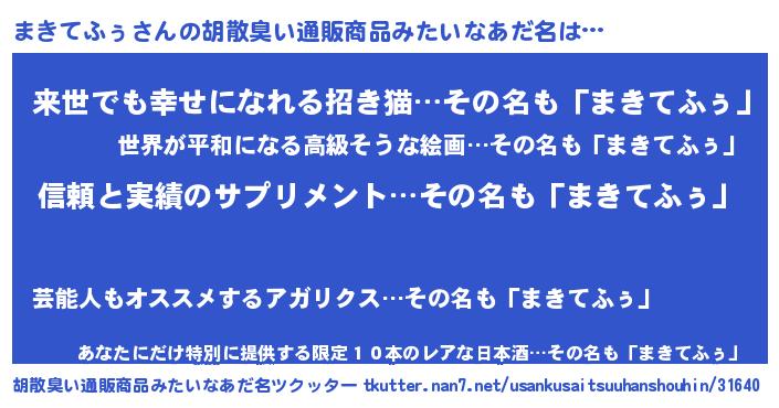 | 意味不明あだ名 | 『とにかく怪しいまきてふぅ』 |