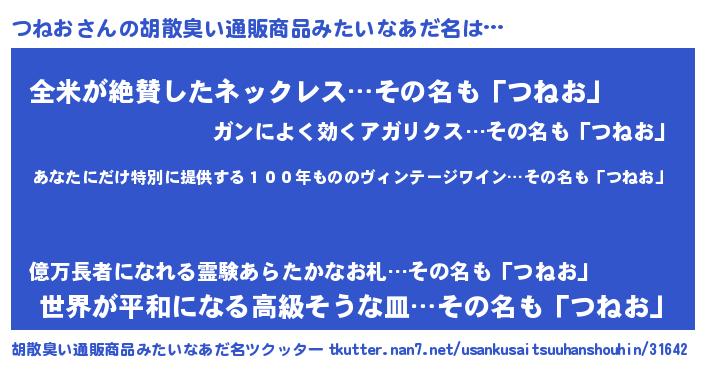 | 意味不明あだ名 | 『住所不定無職つねお(1歳)』『自称つねお』 |