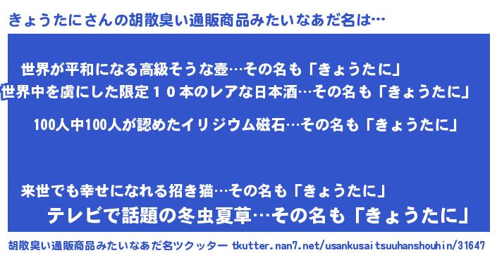 | 意味不明あだ名 | 『眠気覚ましガムきょうたに味』 |