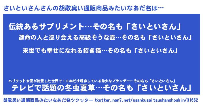 | 伝説のあだ名 | 『古より伝わる吟遊詩人さいといさん』 |