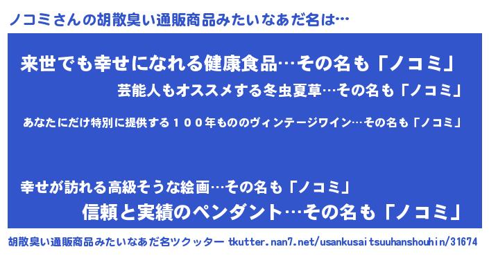| 意味不明あだ名 | 『住所不定無職ノコミ(10歳)』『自称ノコミ』 |