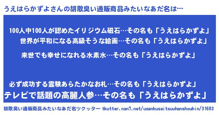 うえはらかずよさんの胡散臭い通販商品みたいなあだ名をツクッター!