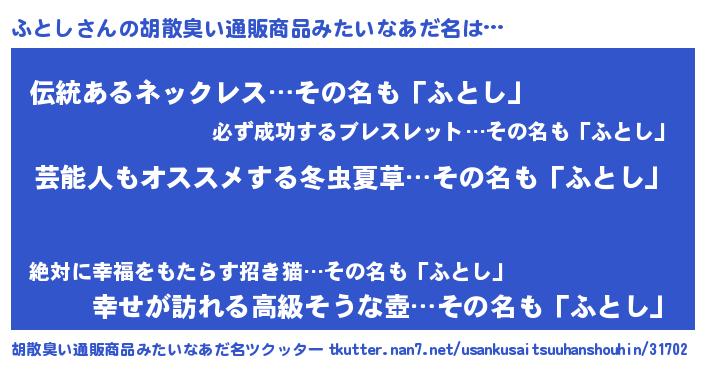 | ヒーロー風カッコイイあだ名 | 『究極戦士フトシ』『銀牙騎士フト』 |
