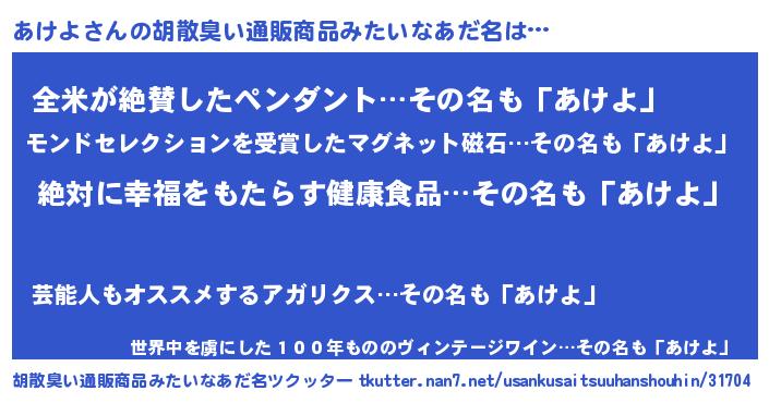 | ヘコむあだ名 | 『あけよ(苦笑)』『あけぷりん』 |