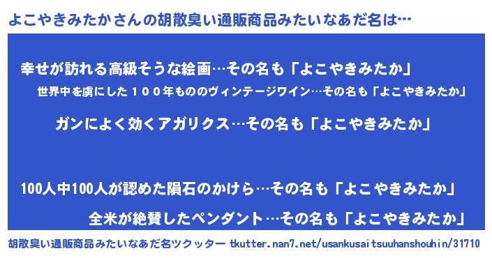 | 欧米人風あだ名 | 『ケンブリッジよこやきみたか』 |