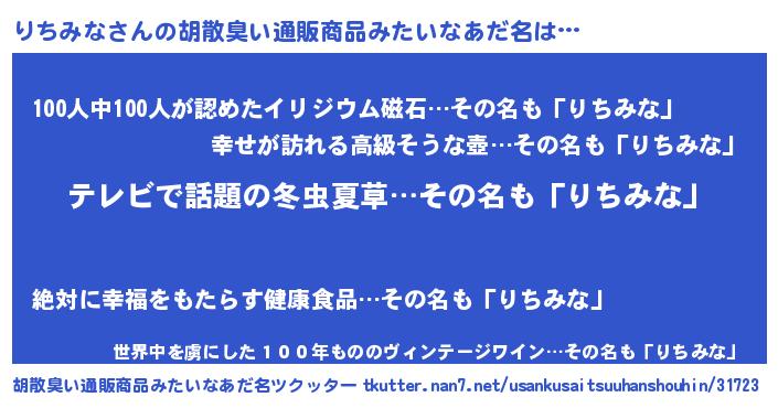 | ヘコむあだ名 | 『豆乳』『りちみな(笑)』『りちにー』 |