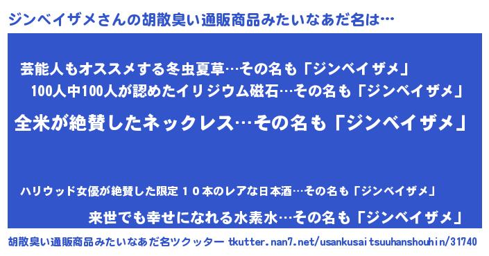 | 男性向けラノベタイトル風あだ名 | 『ジンベイザメに滅ぼされるだけの簡単なお仕事です』 |
