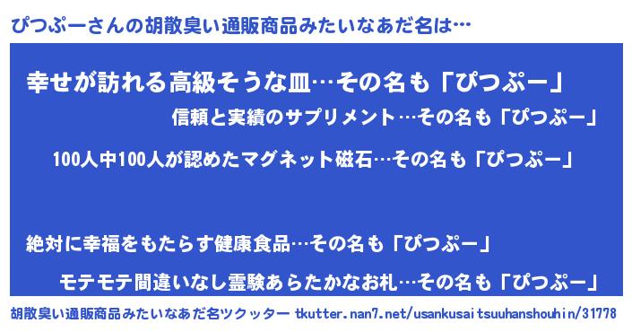 | 男性向けラノベタイトル風あだ名 | 『ピツプースレイヤー』 |