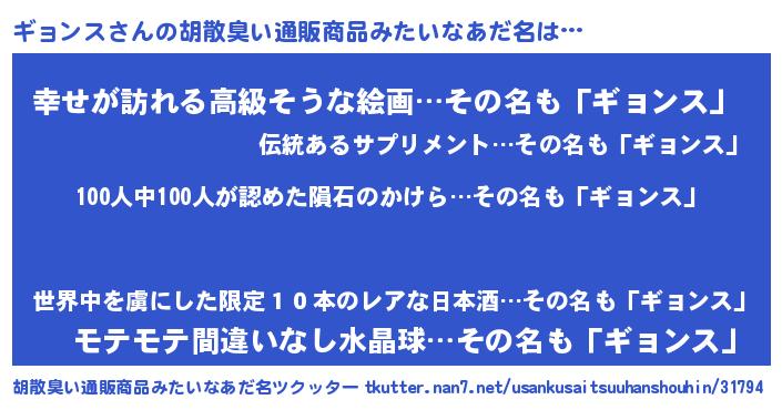| ピコ太郎風あだ名 | 『ギギ太郎』『ピギ次郎』『ギコ十郎』 |