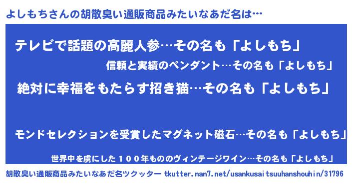 | 意味不明あだ名 | 『永久保存よしもち』『自称よしもち』 |