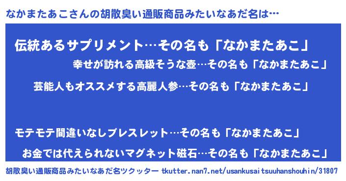 | 肩書あだ名 | 『なかまたあこ中佐』『なかまたあこ閣下』 |