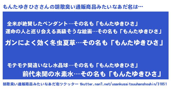 | ヘコむあだ名 | 『もんっちょ』『もんたゆきひさ(苦笑)』 |