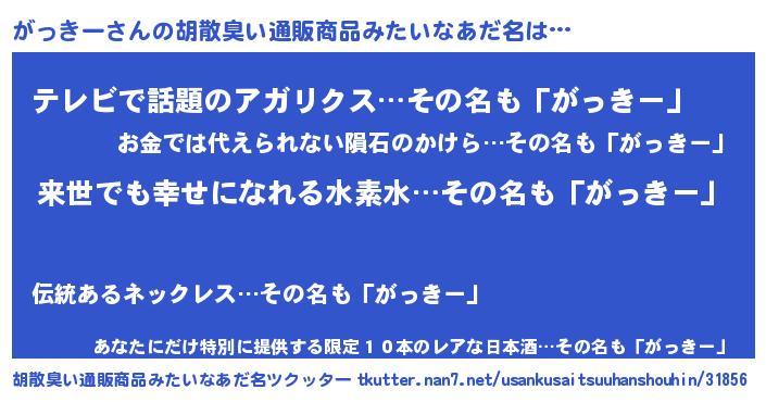 | 意味不明あだ名 | 『永久保存がっきー』『自称がっきー』 |