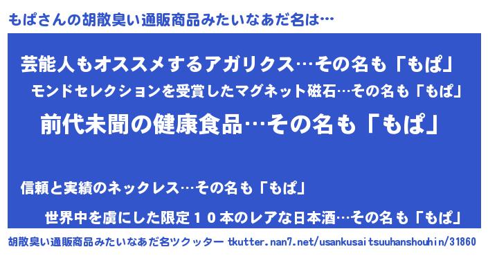 | ヘコむあだ名 | 『もぱ(爆)』『もぱっぺ』『つくし』 |