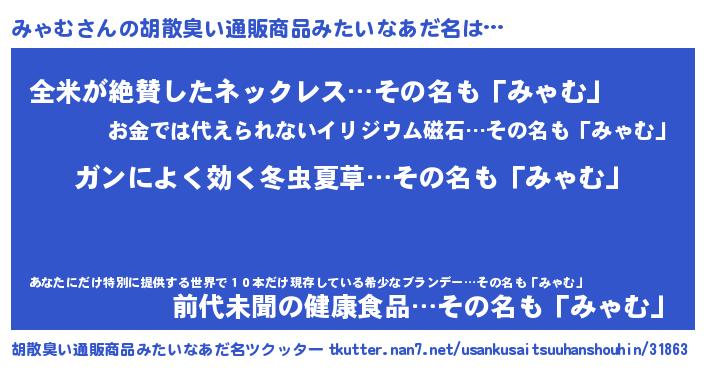| 意味不明あだ名 | 『自称みゃむ』『とにかく怪しいみゃむ』 |