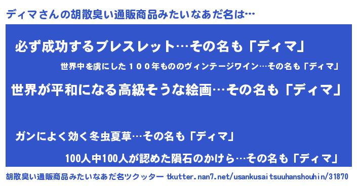 | 男性向けラノベタイトル風あだ名 | 『転生したらディマだった件』 |