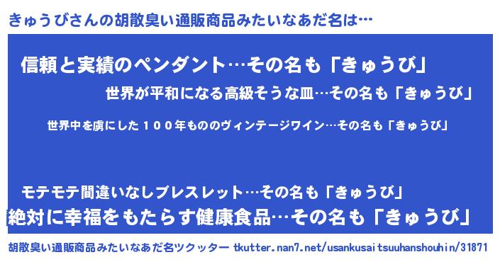 | ヒーロー風カッコイイあだ名 | 『仮面キュダー』『幻影騎士キュ』 |