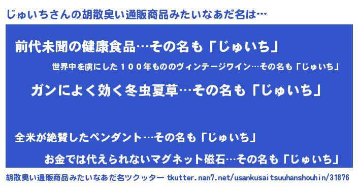 | ヘコむあだ名 | 『じゅいち(苦笑)』『じゅっちょ』 |
