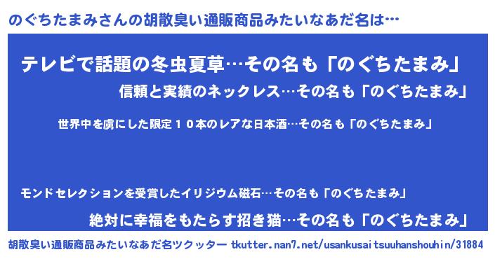| 意味不明あだ名 | 『住所不定無職のぐちたまみ(47歳)』 |