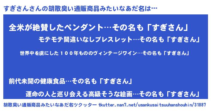 | 意味不明あだ名 | 『住所不定無職すぎさん(9歳)』 |