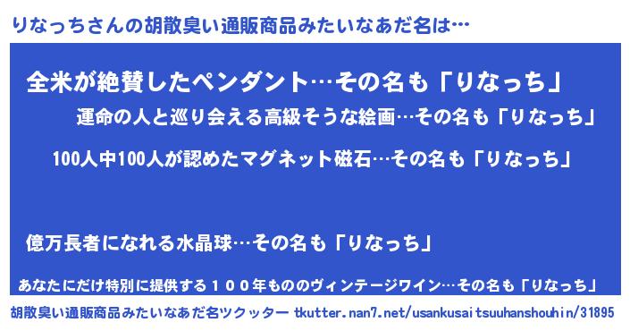 | 男性向けラノベタイトル風あだ名 | 『リナッチスレイヤー』 |
