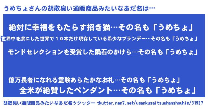 | 欧米人風あだ名 | 『ダニエルうめちょ』『ウサインうめちょ』 |