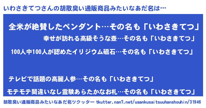 | ヘコむあだ名 | 『いわっぺ』『いわにゅー』『牛乳』 |