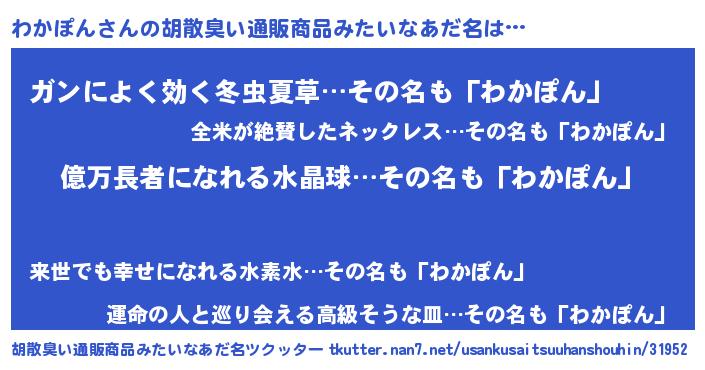 わかぽんさんの胡散臭い通販商品みたいなあだ名をツクッター!