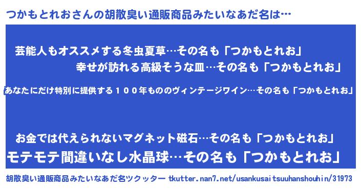 | 意味不明あだ名 | 『住所不定無職つかもとれお(10歳)』 |
