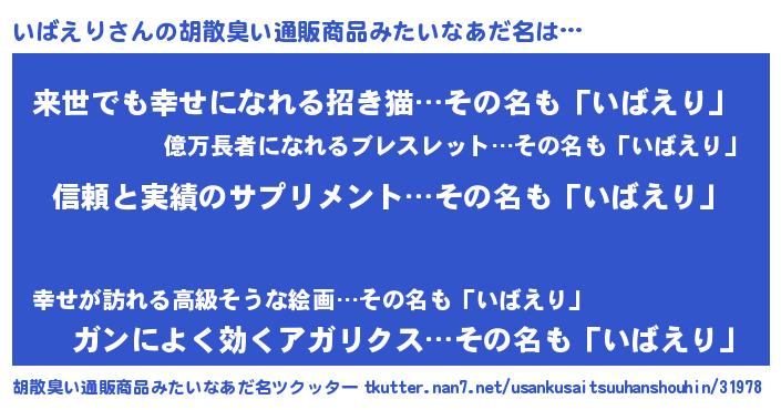 | 意味不明あだ名 | 『めかぶ科いばえり属』『自称いばえり』 |