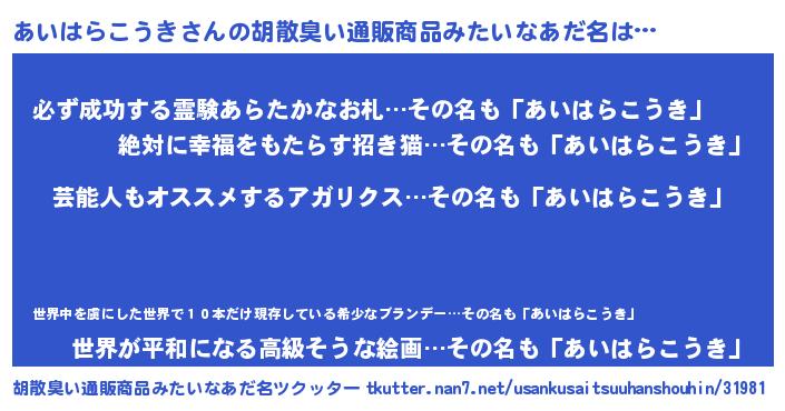 | 意味不明あだ名 | 『自称あいはらこうき』 |