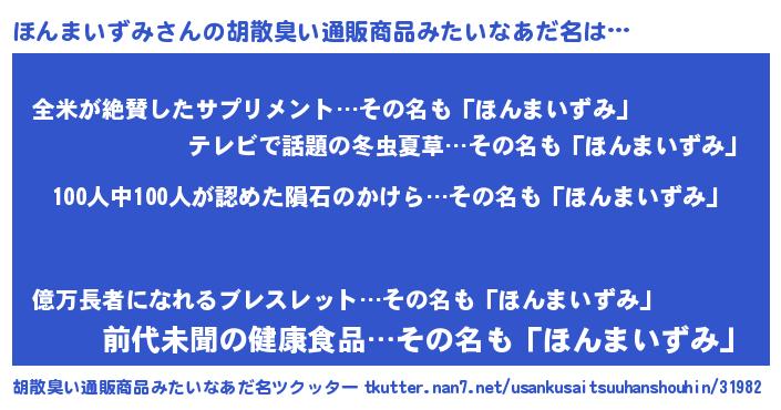 | 男性向けラノベタイトル風あだ名 | 『おまえをオタクにしてやるから、俺をほんまいずみにしてくれ! 』 |