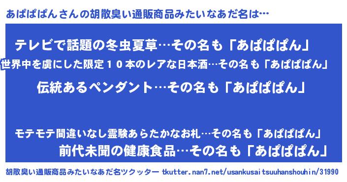 | 意味不明あだ名 | 『とにかく怪しいあぱぱぱん』 |