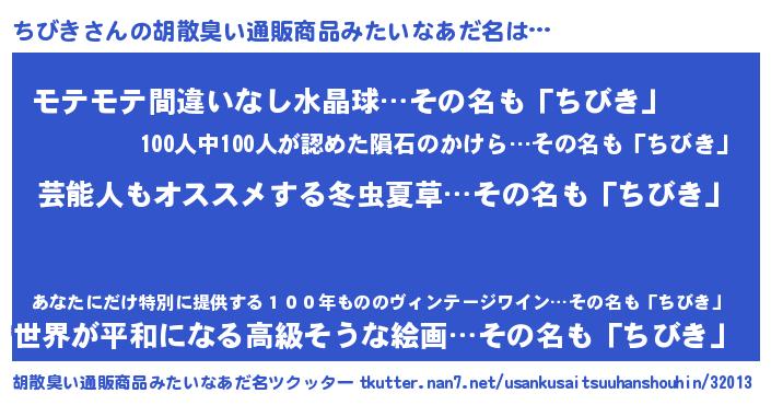 | 女子向けラノベタイトル風あだ名 | 『ちびきの玉の輿計画!』『闇のちびき』 |