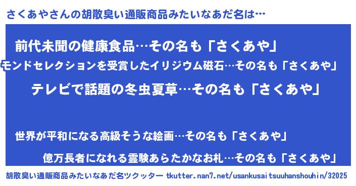 | 伝説のあだ名 | 『古より伝わる勇者さくあや』 |