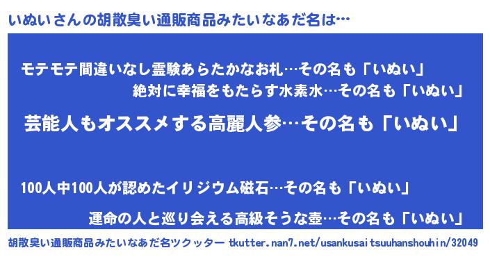 | 意味不明あだ名 | 『自称いぬい』『ペロリンいぬい』 |