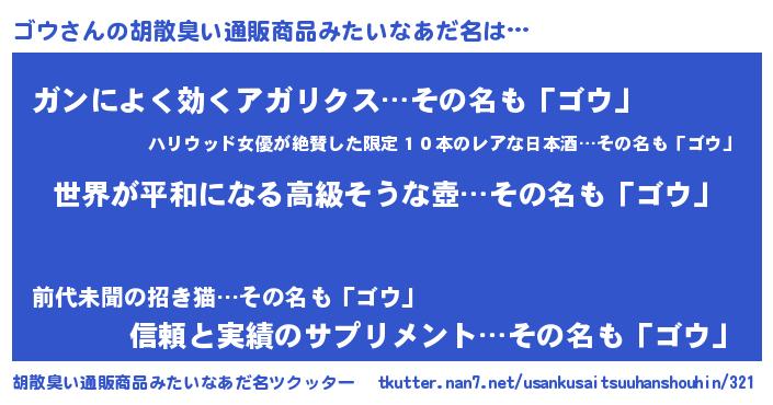 | ヘコむあだ名 | 『なまこ酢』『ゴウっ子』『ゴウ(笑)』 |