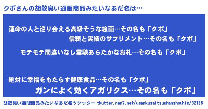 | ヒーロー風カッコイイあだ名 | 『スーパークボ』『ウルトラクボマン』 |