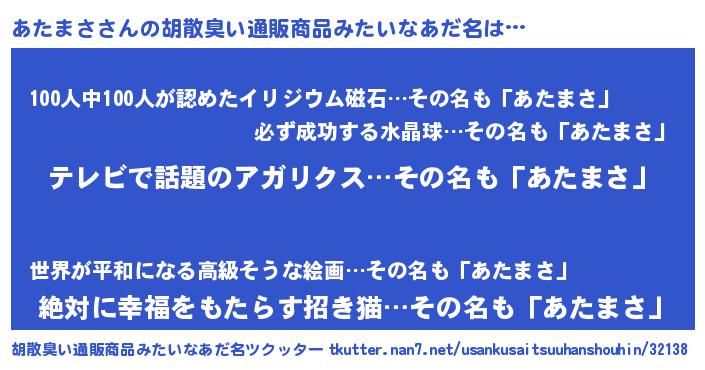 | ヘコむあだ名 | 『あたまさ(笑)』『あたふぇ~』 |