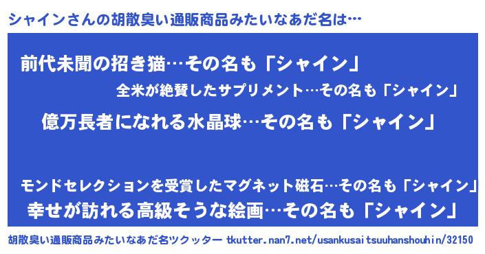 | ヘコむあだ名 | 『シャふぇ~』『シャイン(笑)』 |