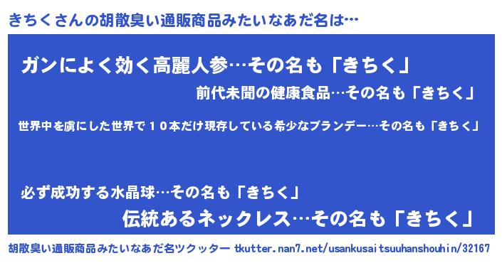 | ヒーロー風カッコイイあだ名 | 『仮面キチダー』『サイバー戦士キチク』 |